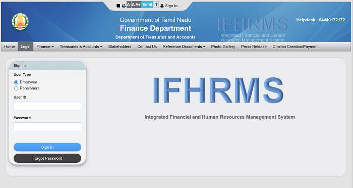 தமிழ்நாடு அரசின் நிதித்துறை மூலம் நேரடிப் பயனடையும் அரசு ஊழியர்கள், ஆசிரியர்கள் & அரசு சார் அலுவலகங்கள் என அனைத்திற்குமான நிதியளிப்பினை தனிப்பட்ட இணைய வழியில் மேற்கொள்ளும் பொருட்டு 10.01.2019 முதல் நடைமுறைக்குக் கொண்டுவரப்பட்டதே IFHRMS (Integrated Financial and Human Resource Management System) ஒருங்கிணைந்த நிதி மற்றும் மனிதவள மேலாண்மை அமைப்பு.